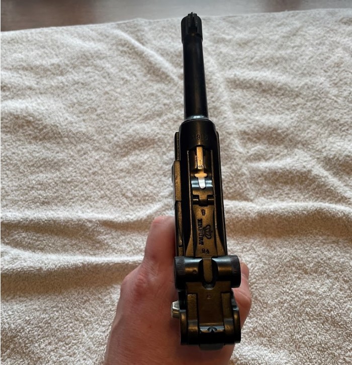 Complete restoration of Erfurt P08 Luger. Mechanism rebuild; arsenal duplication refinish with proper “straw” finish were required. All new action springs. Extensive test fire. Very nice pistol