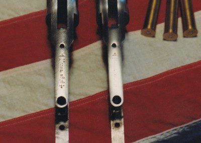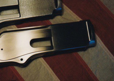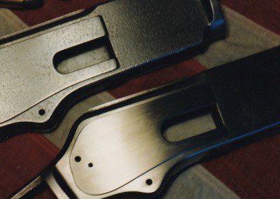 Pair of Winchester receivers showing excellent results achieved by surface grinding, file and stone work in repairing extensive surface pitting. Engraver to restore all original numbers and markings.
