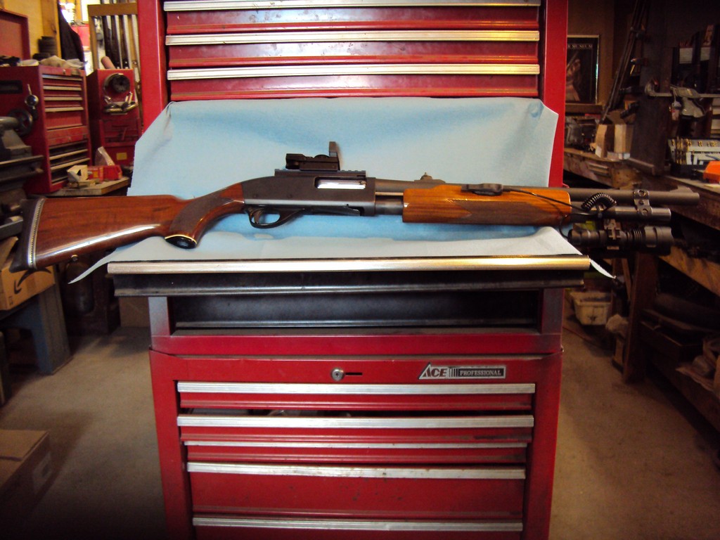 Home defense shotgun built on Smith and Wesson model 3000 12GA pump gun.